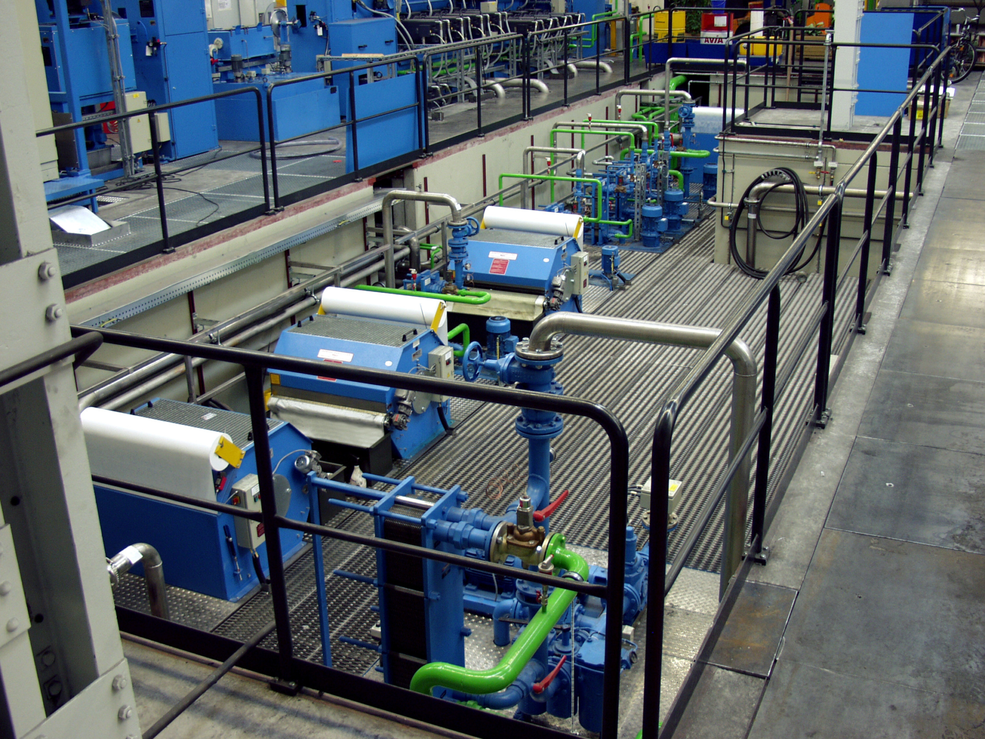 Modern networks of pipe and channel systems connect the respective production facilities to a central filter system.