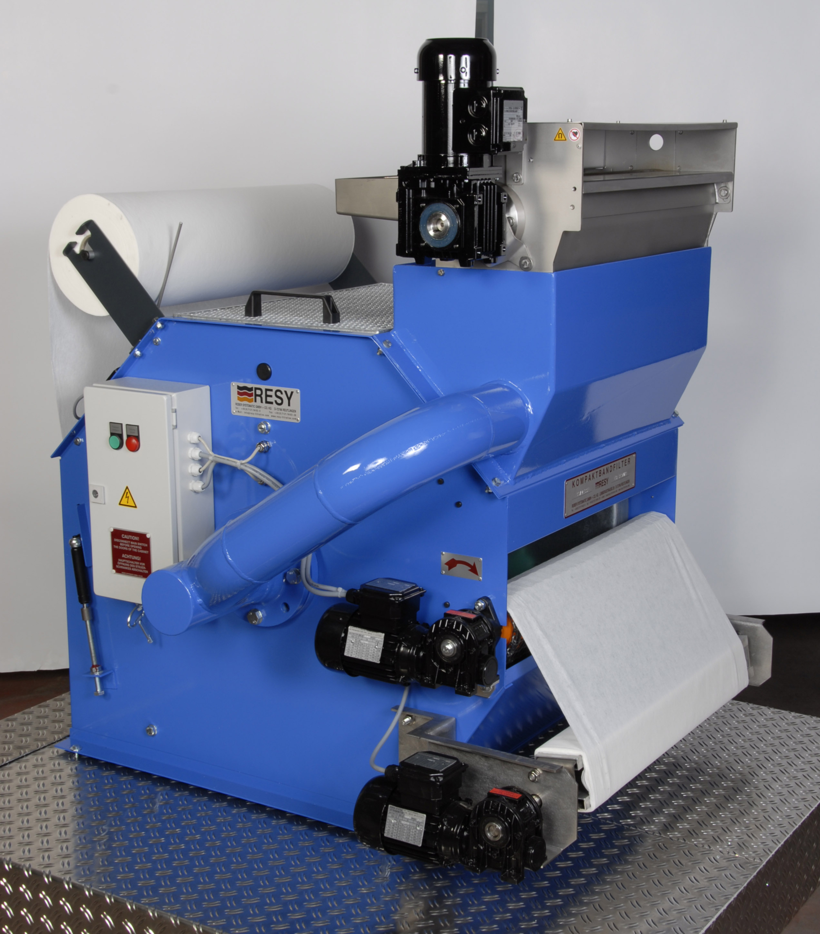 The desired degree of fineness can be easily adjusted by using different types of filter fleece. For special applications, we also offer this product with endless belt fabric as a filter medium for applications with defined separation efficiency and materials. RESY KBF-E